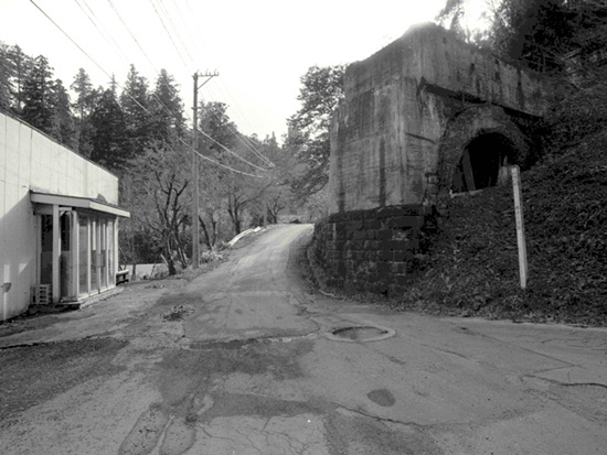 矢立峠の下をくぐり抜ける長いトンネルができるまでは、矢立温泉の宿の頭上を列車が通っていたらしい。今も旧奥羽本線のトンネルと橋脚が残り、旧国道7号線が天然秋田杉の中を峠に向かって伸びている。