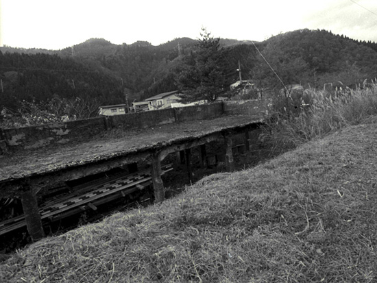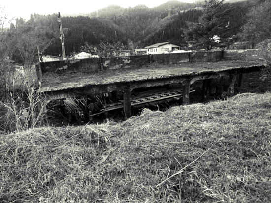 ホームの跡ではなく、貯炭槽の残骸らしい。ここで奥羽本線の難所として有名な矢立峠を越えるため蒸気機関車に石炭を積み込んだらしい。