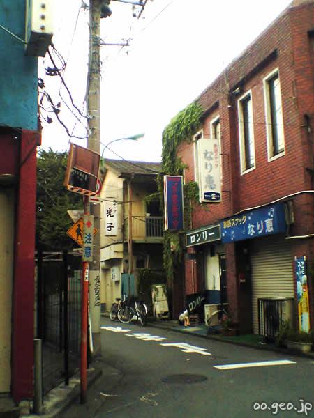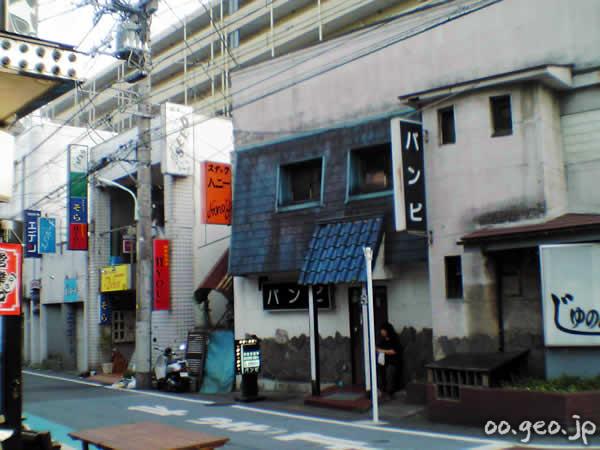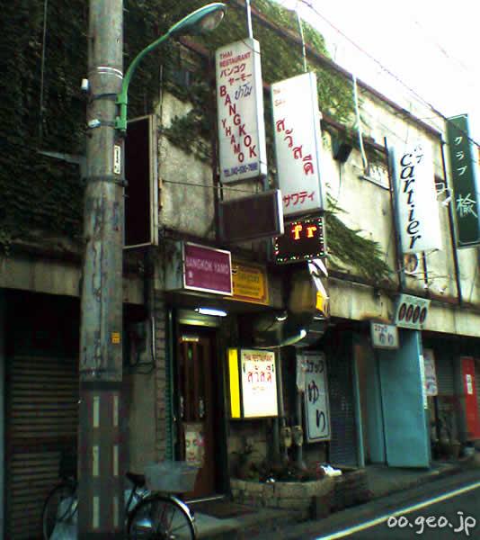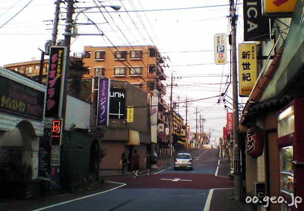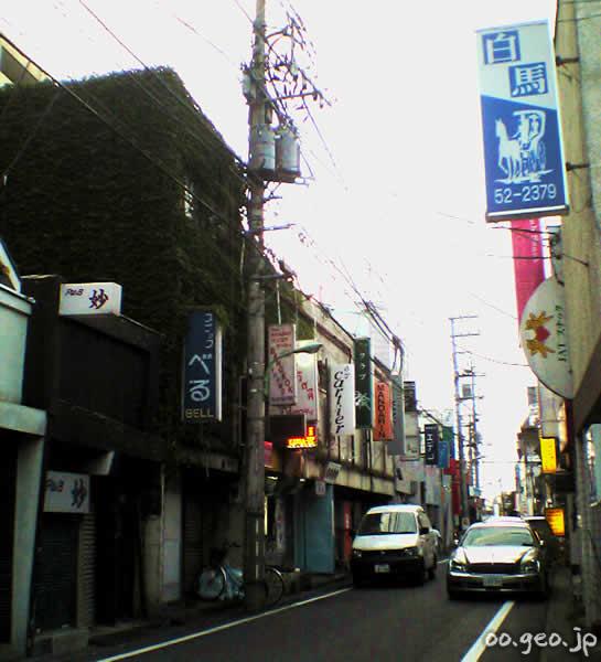 福生駅の東口から3分ほど歩いた場所に広がる旧赤線地帯。目印は「じゅのん亭」のある交差点。そこから南に曲がったところに、昭和30年代から続く赤線街の雰囲気を伝えるパブ、スナック、バーがずらっと建ち並んだ一帯がある。米軍横田基地で有名な街だが、タイやフィリピンなどアジア系の店も多く多国籍情緒が漂っている。貧相で安っぽく派手で薄汚れた歓楽街が妙な哀愁を誘う。