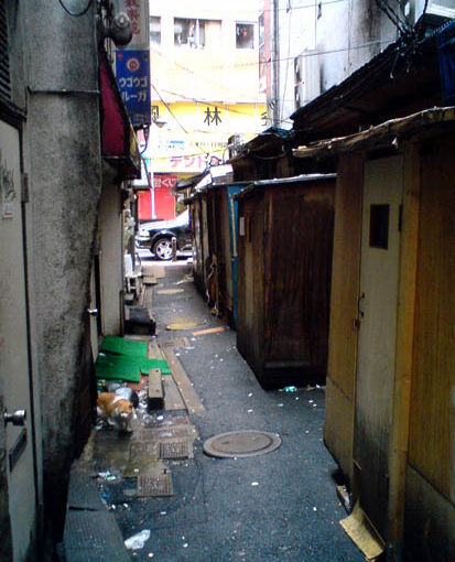 ▼この路地を出た向かい側には、暴力団の抗争による発砲事件が起きた喫茶パリジェンヌがある(風林会館内)。歌舞伎町の中では比較的こぎれいな外観の喫茶店だと思う。2005年秋頃、何も知らずにその喫茶店に入った。清潔な雰囲気の店内には客がまばらにしかいなかったが、しばらくして連れの人が「あの隅の方にいる男達はヤクザだと思う」と気まずそうな表情をしながら小声で話し始めたので驚いた。男達は皆背広を着ていて、目の悪い私には普通のサラリーマンとの見分けがつかなかった。家に帰ってきてからネットで調べて実態を知り、冷や汗が出てきた。無知ほど恐ろしいものはない…