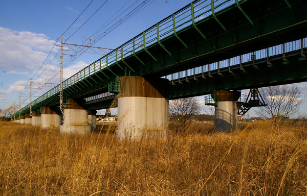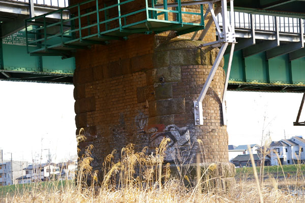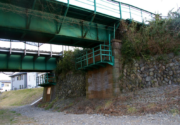 2009年2月に訪れたら、いつの間にか、1つの煉瓦造の橋台を除いて灰色のペイントが施されていた。上り線のプレートガーダーの側面にはJ型スティフナー(補鋼材)が垂直に取り付けられている。J型スティフナーは明治30年代以前に設計された典型的な英国式ポーナル形の桁。ガーダーには緑色の新しい塗料が施されており、一見して古い鉄橋とはわかりづらい。