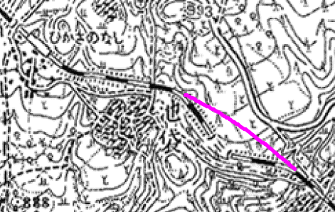 中央本線旧線(小淵沢~信濃境) 中央本線 廃止鉄道(廃線) 諏訪郡 2009.08.26 2023.04.02 〒399-0101 長野県諏訪郡富士見町境6063付近 ▼昭和前期の1/5万分一地形図。 ピンクの線が現在の中央本線のおおよその位置。 旧線は池生神社の裏手あたりから分岐し、現在の中央本線の池生(いけおい)トンネルの小淵沢側出口(北澤アート付近)あたりで合流する。 廃線