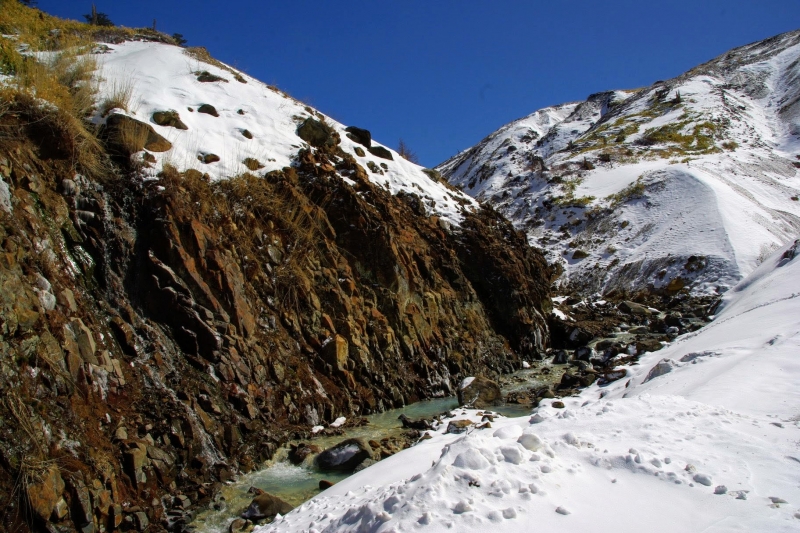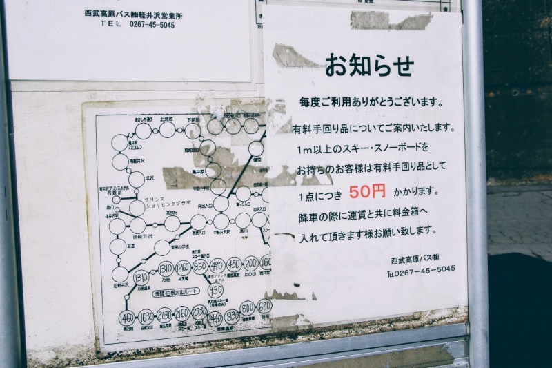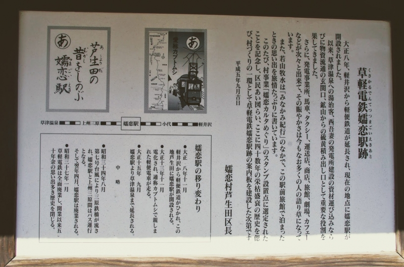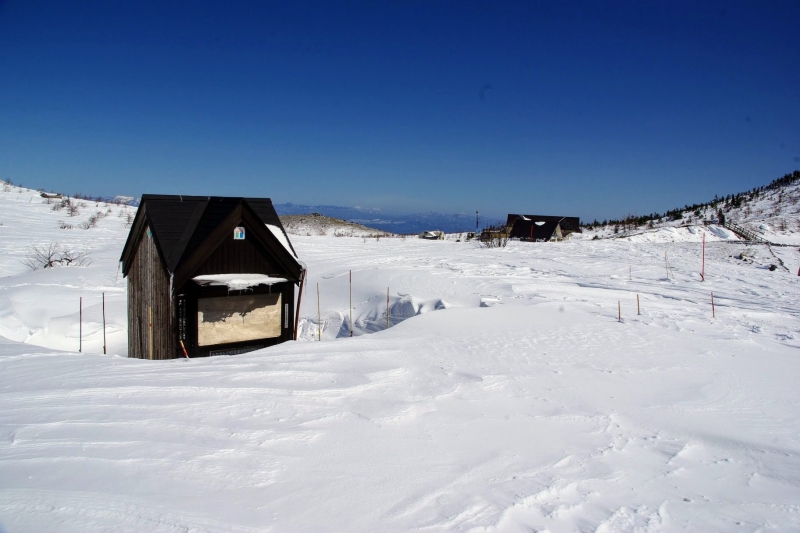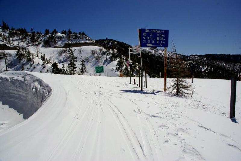 日帰りで草津の白根山にスノーシューイング。東京から電車で日帰りだと慌ただしく、帰りの電車の時間が気になってあまり悠長な雪山ハイキングは楽しめなかった。 バスの発車時刻まで時間があったので、万座・鹿沢口の駅周辺をぶらぶら散歩し、草軽電鉄の廃線跡などを一部見て回った。