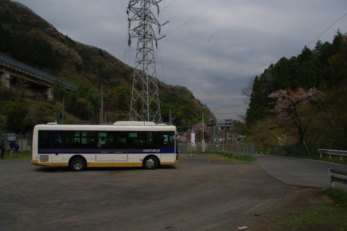 ▼小仏バス停。高尾駅から小仏バス停までバスで20分ほど、運賃220円。