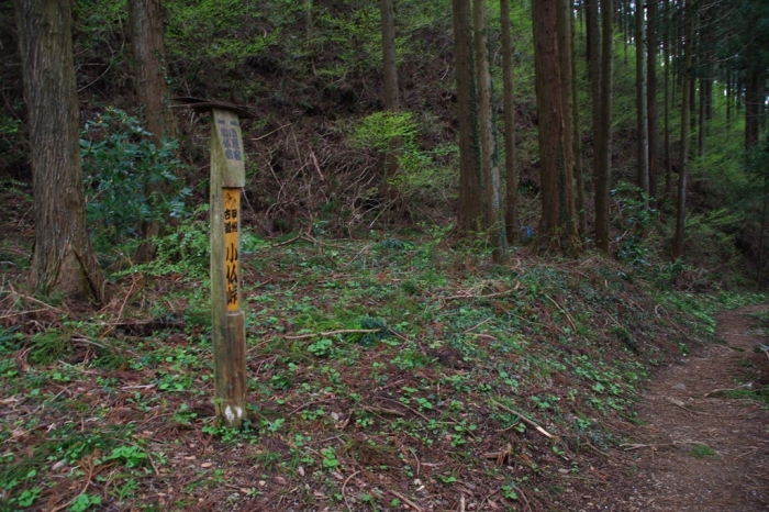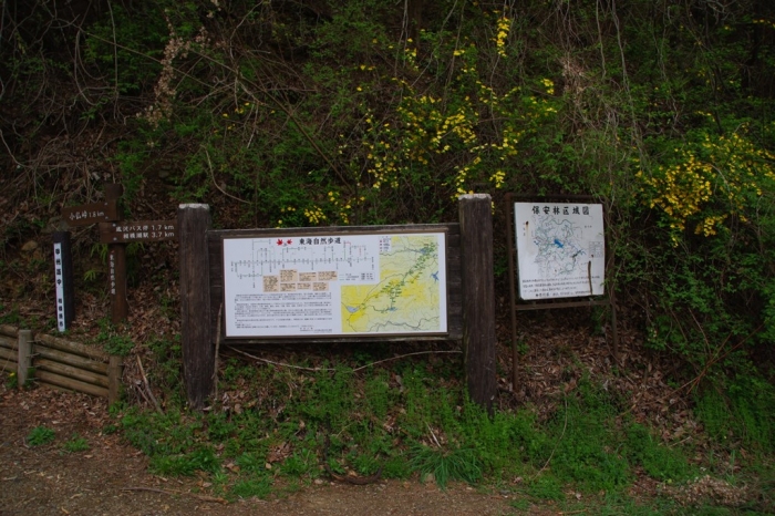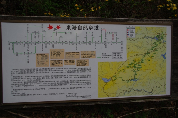 ▼底沢方面の小仏峠登山口 東海自然歩道の案内板が設置してある