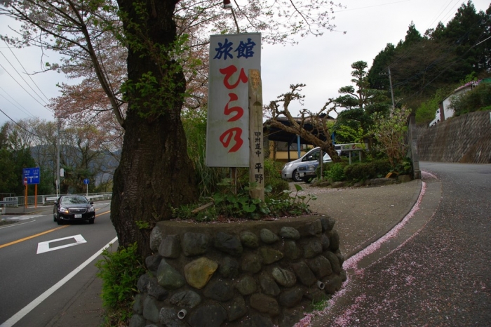 ▼民宿ひらの 昭和な風情が素敵 わきに「甲州道中・平野」の道標あり。