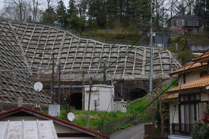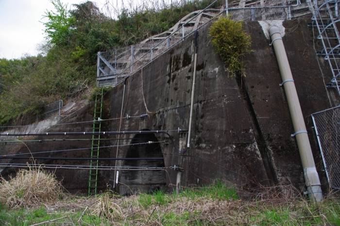 ▼7. JR中央本線 上の山トンネル 上り線(左)と下り線(右) 法面がすごい