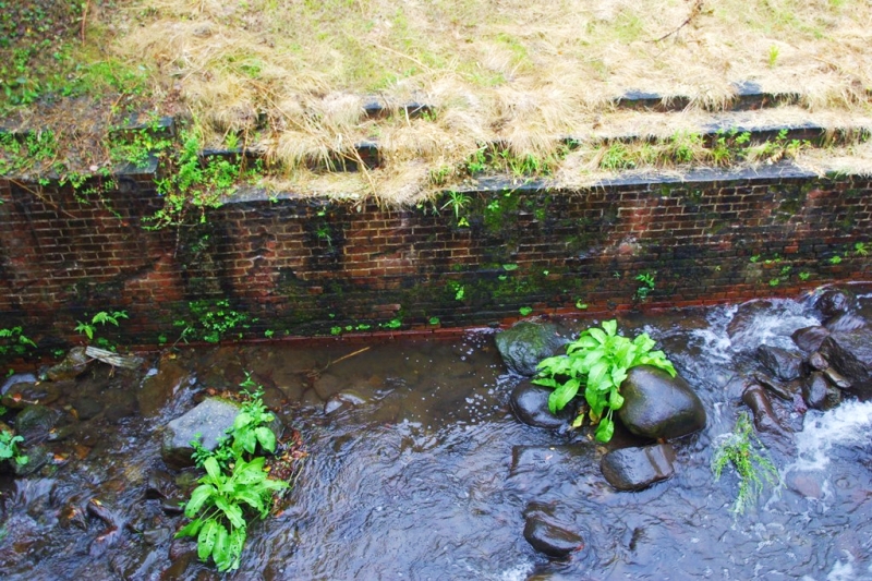 JR横川駅~碓氷峠鉄道文化むらの間、矢野澤橋付近の川に古い煉瓦壁が残る