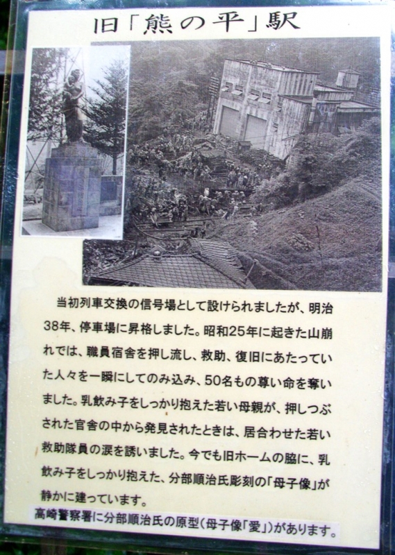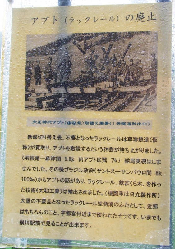 旧熊ノ平駅碑、アプト式開通の碑などがある。