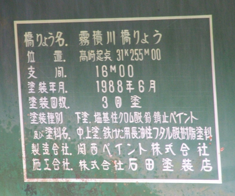 霧積川橋りょう 1988年6月塗装 橋のたもとに旧碓氷第1橋梁の橋台が残るらしい。