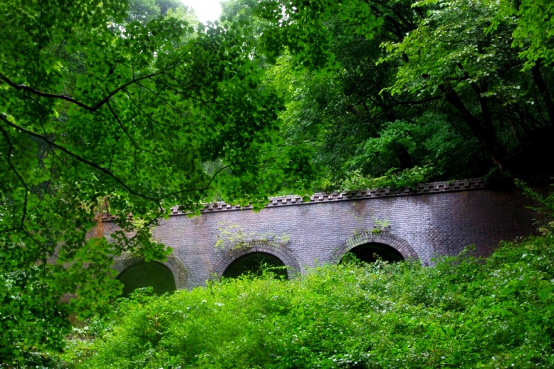碓氷第9隧道と第10隧道(下り線)の間、新線の南側にある煉瓦造の橋梁。