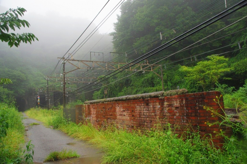 熊ノ平 旧碓氷第11隧道(下りの突込線?)付近に残された古い煉瓦造の壁