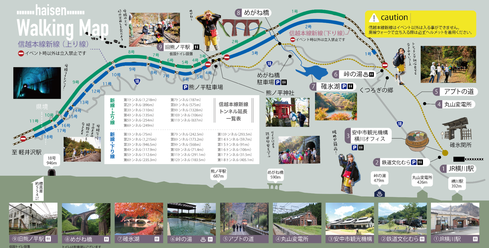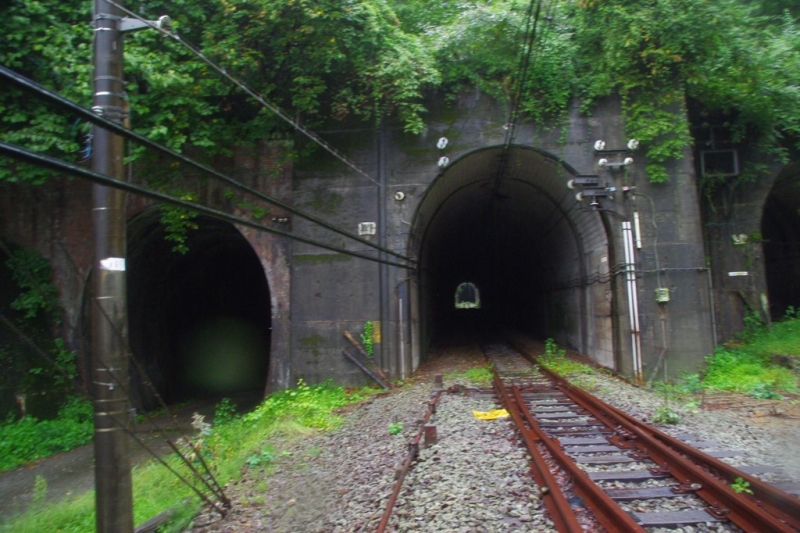 熊ノ平。軽井沢方面に並ぶ3つのトンネル。