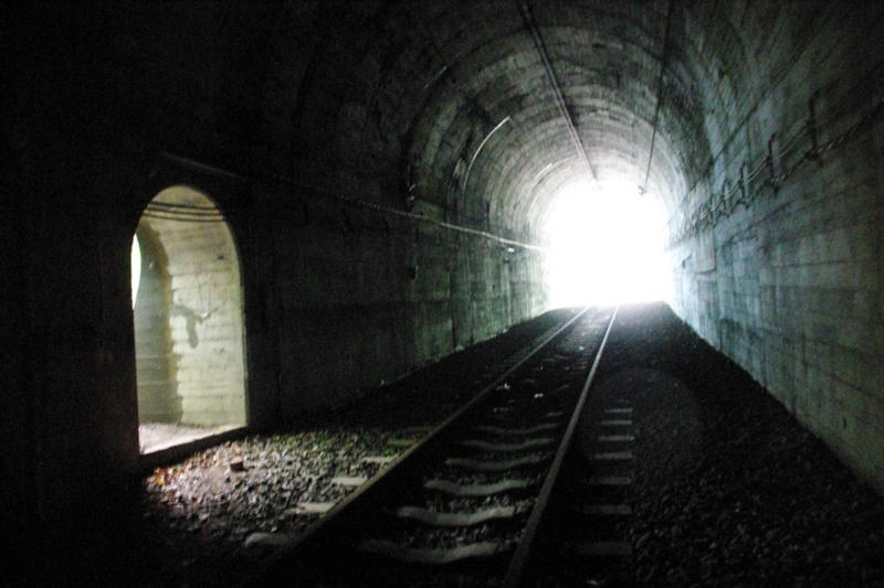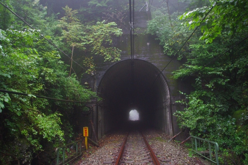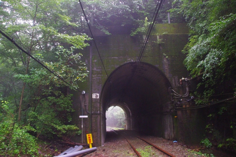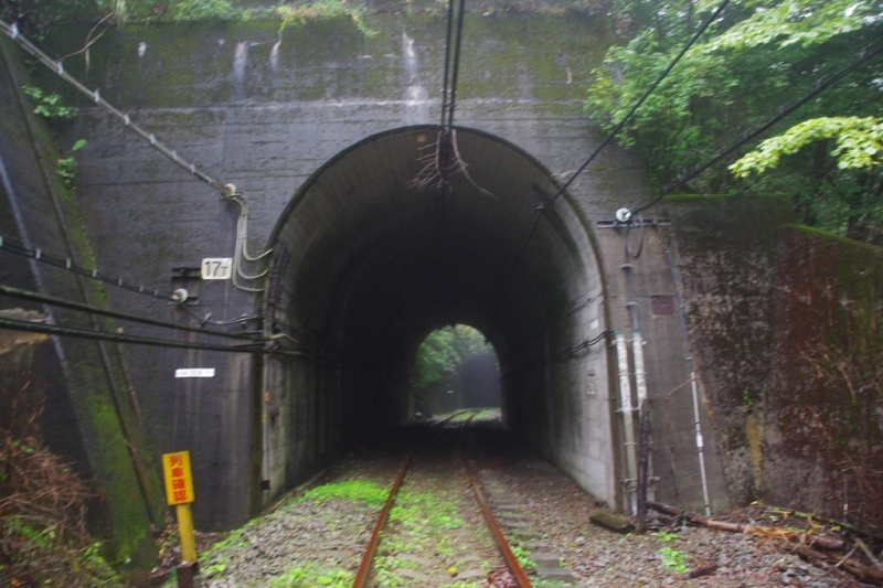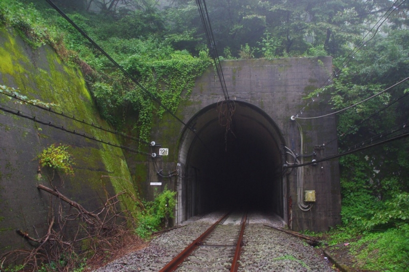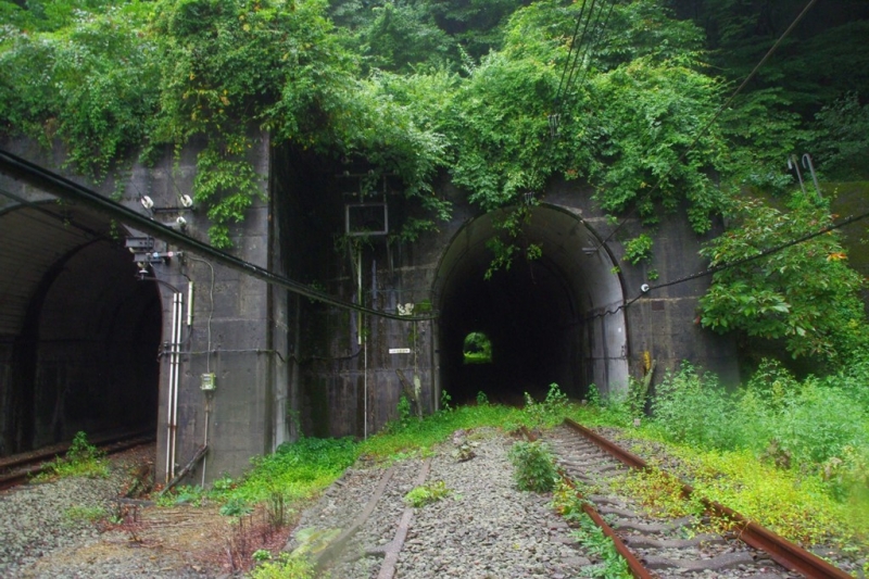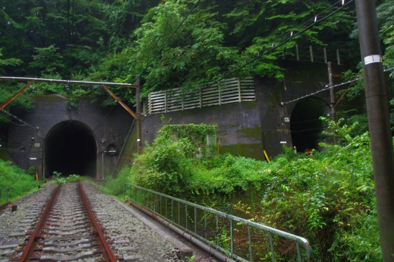 熊ノ平。横川方面に並ぶ4つのトンネル。