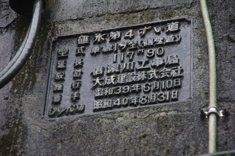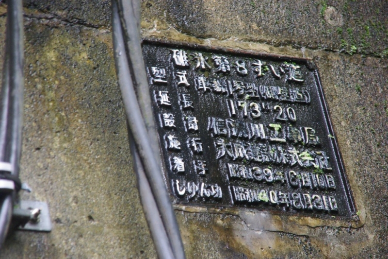 碓氷第18ずい道(下り線)横川側坑口の苔むしたプレート