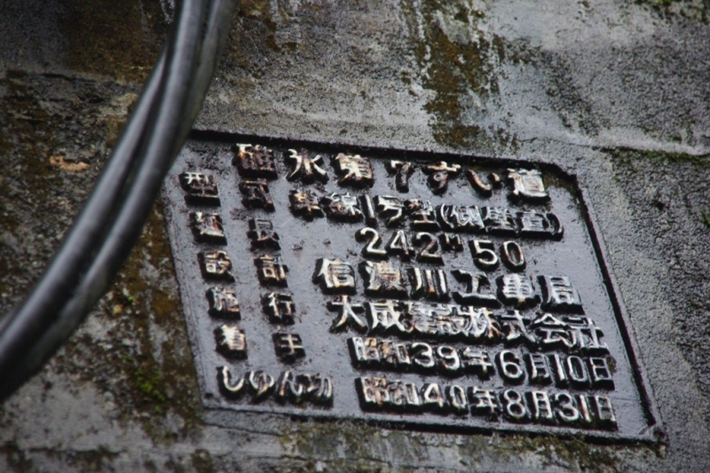 碓氷第10ずい道(下り線)横川側坑口のプレート。延長71M44。昭和40年8月しゅん功