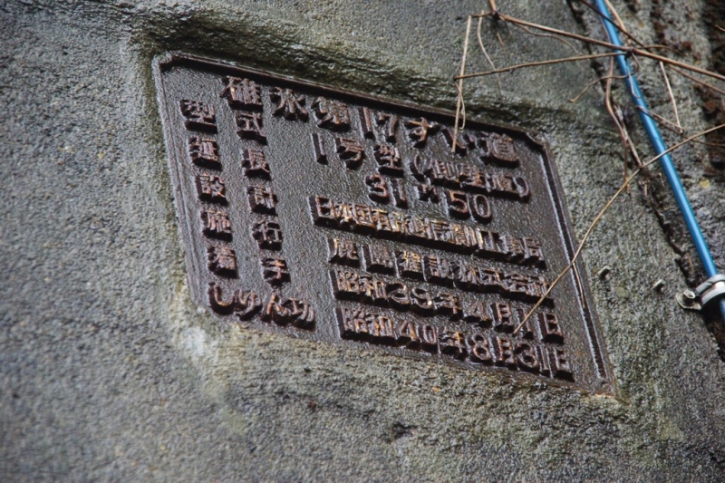碓氷第13ずい道(下り線)横川側坑口のプレート。延長293M50。昭和40年8月しゅん功。