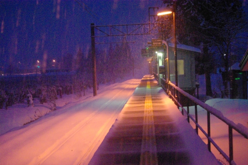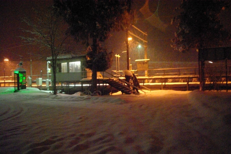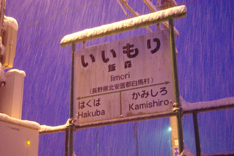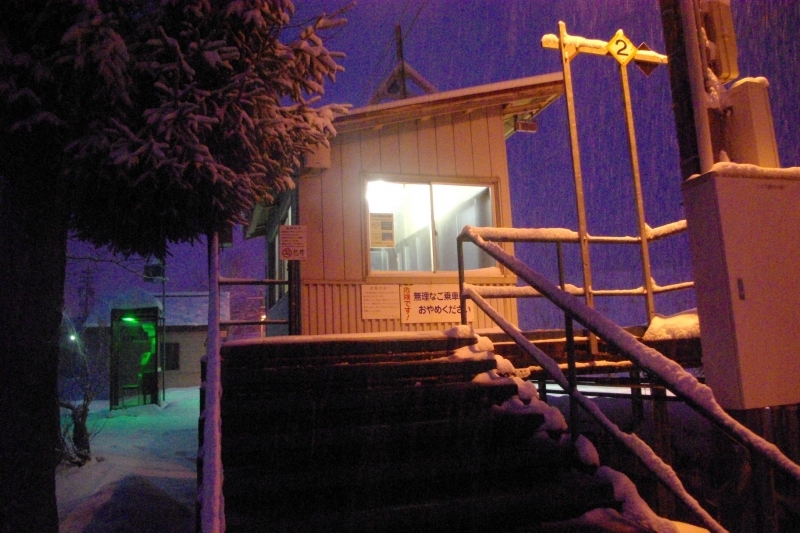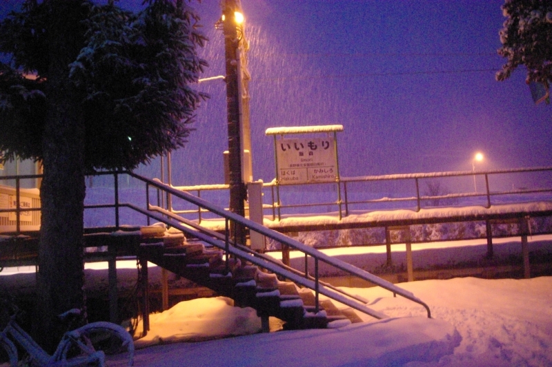 ムーンライト信州号を神城駅で降り、早朝の雪の中を徒歩で飯森駅まで移動した。その後、当駅から大糸線に乗り、南小谷駅まで移動。朝6時半頃だがまだあたりは暗くしんしんと雪が降っていて、とても幻想的な風景だった。