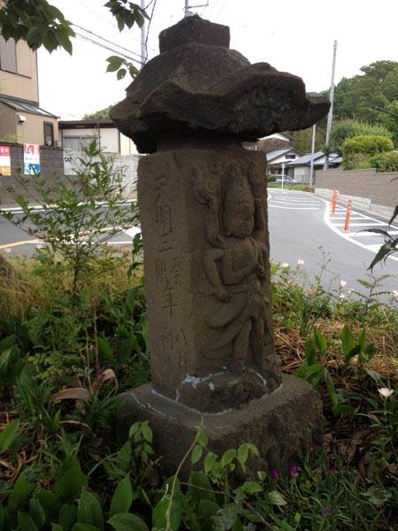 (右)腕が6本ある古い石仏 「天明三年(癸卯)八月朔日」の刻印。1783年の石仏のわりには風化が少ないように感じる。