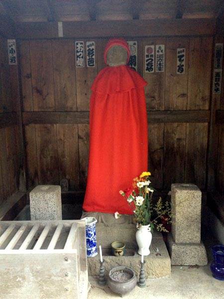 上宿町会会館の南西の細い路地は近年拡張されたものらしく、昔の地図には載っていない。古地蔵は比較的小さい。