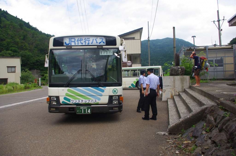 JRの代行バス。登山者の人がバスを待ってた。