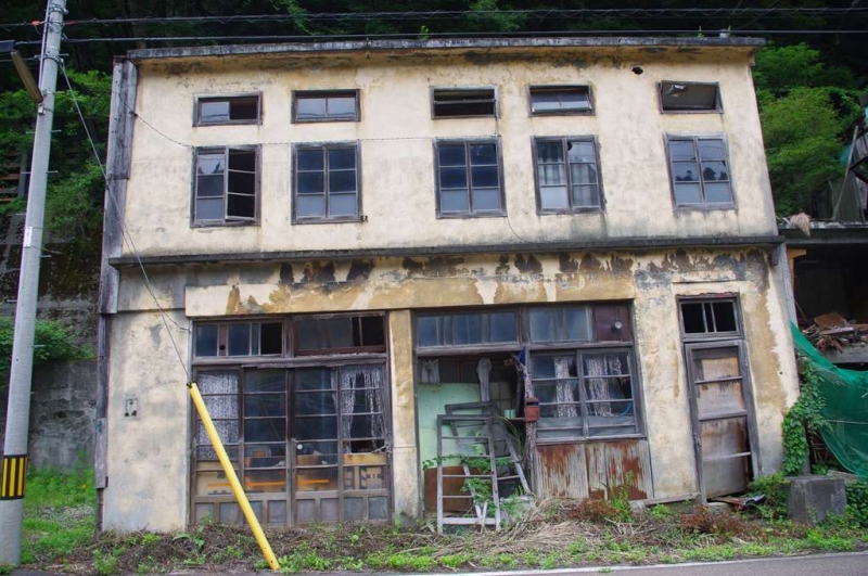 駅前の商店や廃屋など