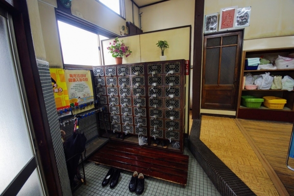 ▼入口の写真を撮らせて頂いた。下駄箱が渋い。