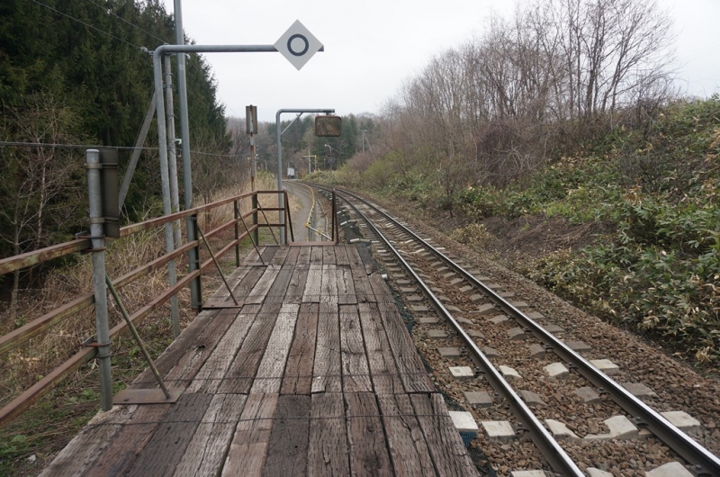 駅の南側に橋台跡のようなものがあるが、これは何だろう。もともとスイッチバック駅だったというが、その遺構だろうか。