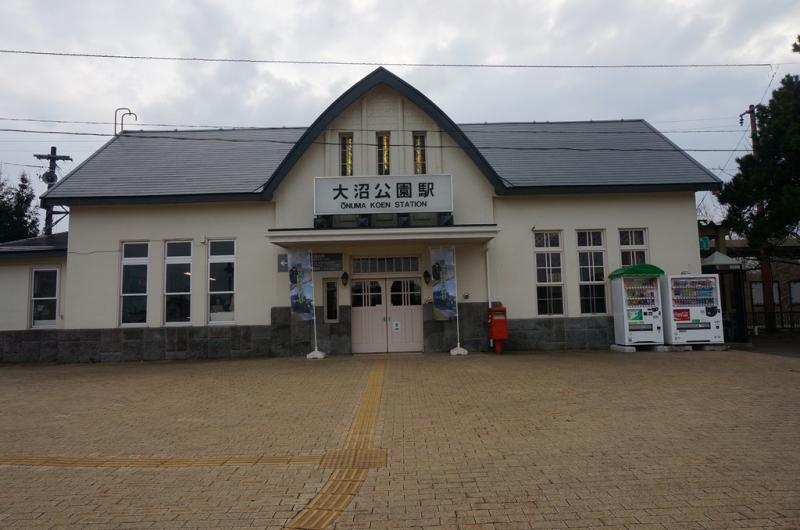 大沼公園駅は、函館から旭川までを結ぶ函館本線の駅です。北海道の南西部、駅のある大沼の周辺は、明治36年から自然公園として守られ、日本有数の景勝地として昭和33年に国定公園の指定を受けています。この駅は、明治40年に北海道鉄道の臨時乗降場として誕生しました。同年に国有化され、翌年、仮停車場となり、大正13年に昇格して駅になりました。大沼公園駅の名前になったのは昭和39年のことです。昭和4年から使われている木造駅舎は、三角屋根を組み合わせて正面入り口を強調したデザイン、モルタルの外壁に大理石の腰壁をしつらえ、すべての窓が縦長の洋館風になっています。大沼のほとりまで、歩いて5分ほどにある観光地の駅です。
