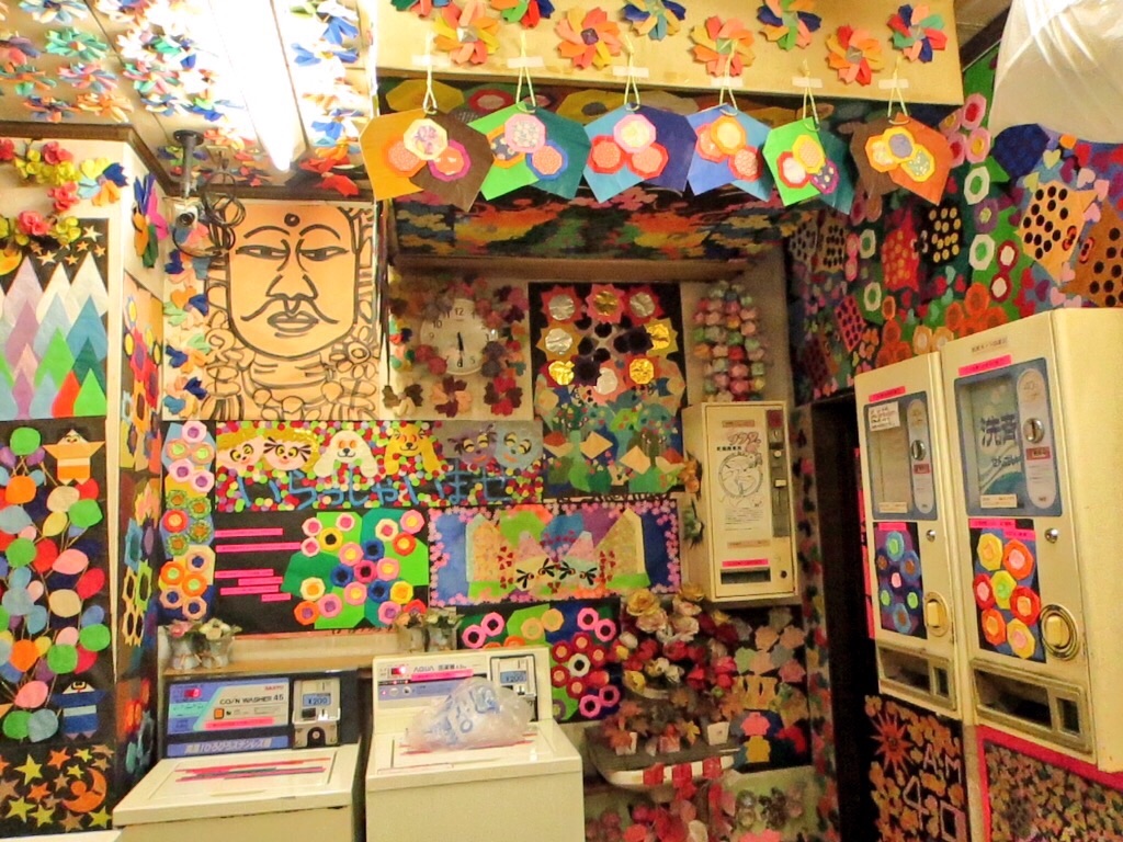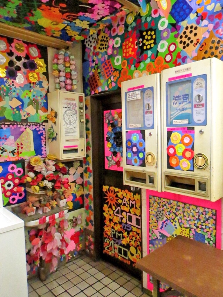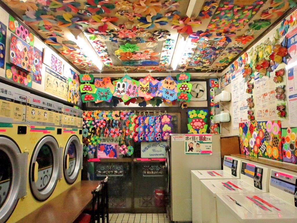 カラフルでジャンクで電波なイメージの折り紙の飾り付けで店内が覆い尽くされてる。