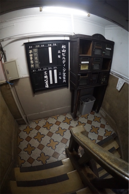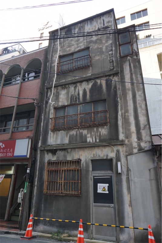 2016年4月1日から解体されてしまう両国の松山ビル(昭和4年/1929年築)、中を事務所にしていた写真家の三好心さんが解体を前に見学会と写真展をするというので、最終日にあわてて見に行ってきた。関東大震災後の1930年頃に建てられた鉄筋コンクリート造の3階建てビル。東京大空襲にも耐えたが、道路の拡幅工事に伴って解体される。