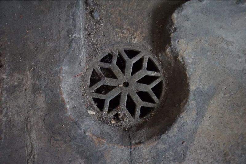 流し台は石をくり抜いて作ったのだろうとのこと。時代が進むとタイル貼りの洗面台の生産が多くなる。