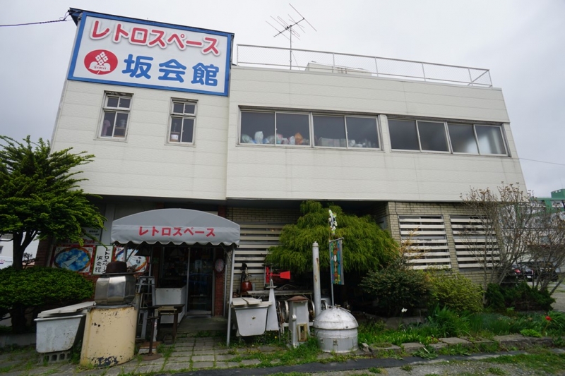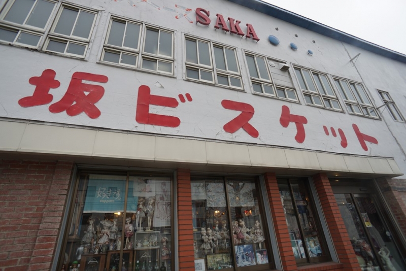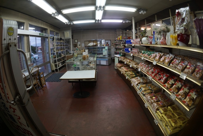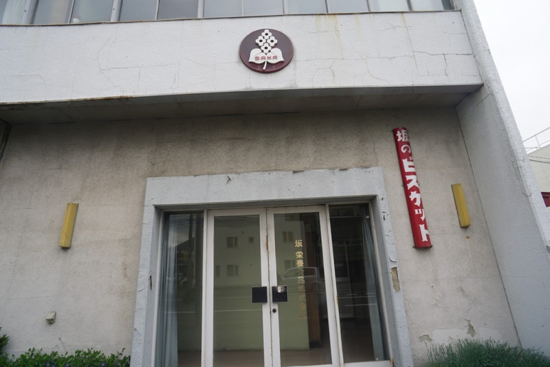 ▼レトロスペース坂会館の売店(ビスケット売り場)。大変な暴風の日だったので、通常の入口は閉鎖され、売店が入場口になっていた。入場無料の代わりに、ビスケットを買ってくれるように促される。