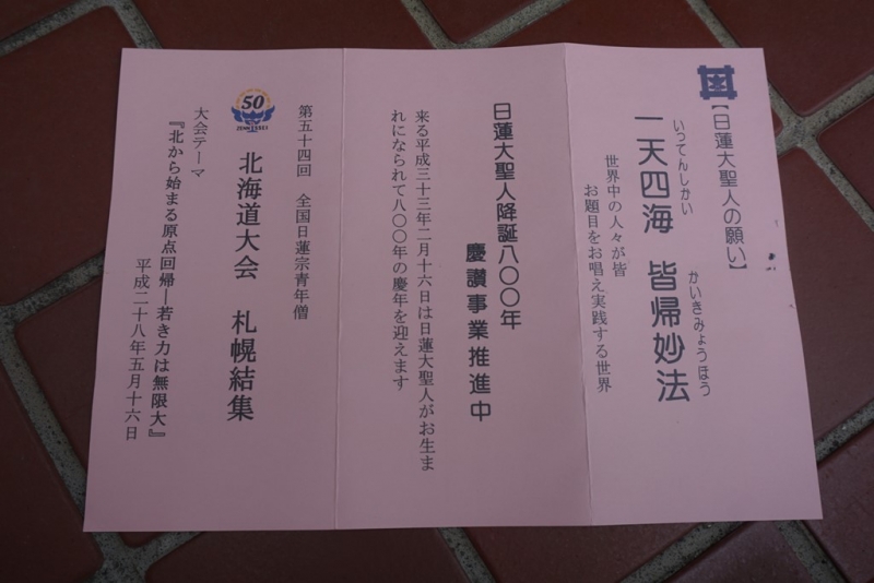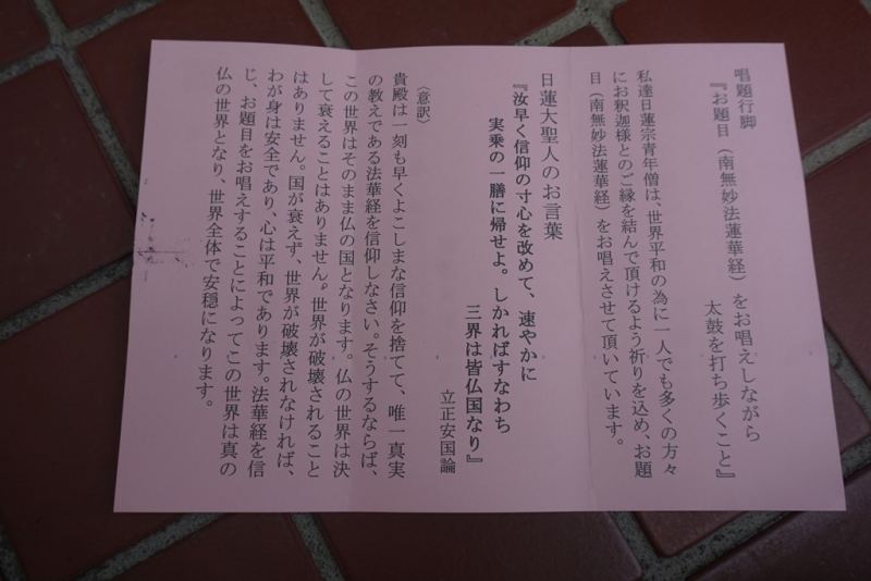 ▼レトロスペース坂会館に入館しようと思ったら、遠くからどんどこ太鼓の壮大な音が響いてくる。何事かと思ったら、日蓮宗の僧侶さん達が太鼓を打ち鳴らしお経を唱えながら行脚する修行中だった。関係者さんにパンフレットを頂いて、写真撮影の許可ももらった。