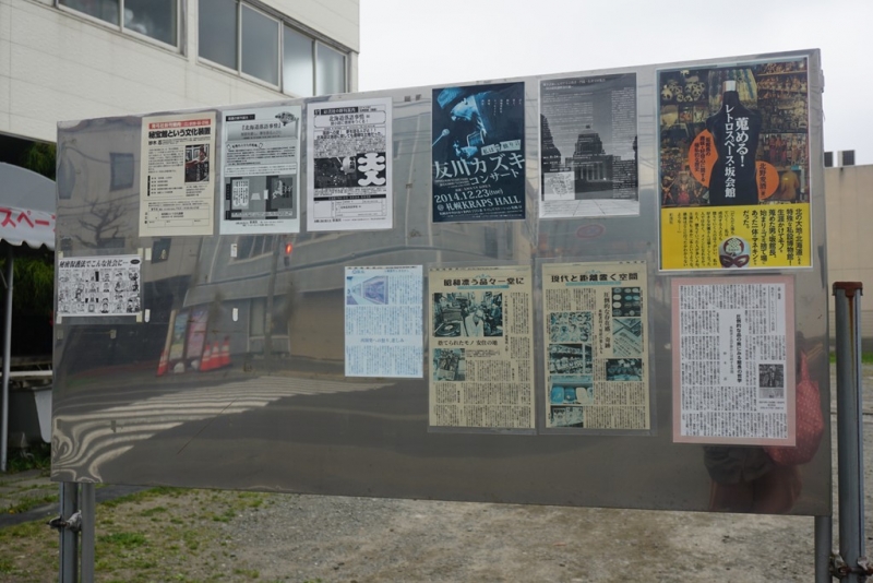 ▼いよいよレトロスペース坂会館に入館(無料)。興味深いチラシ掲示板。