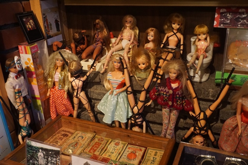 ▼完全にサブカル系な店内。緊縛SM系リカちゃん人形など多数