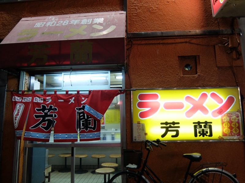 ▼今日の宿、スワンキーホテル・オートモに向かう。途中にあったラーメン屋・芳蘭。昭和28年創業の老舗らしい。