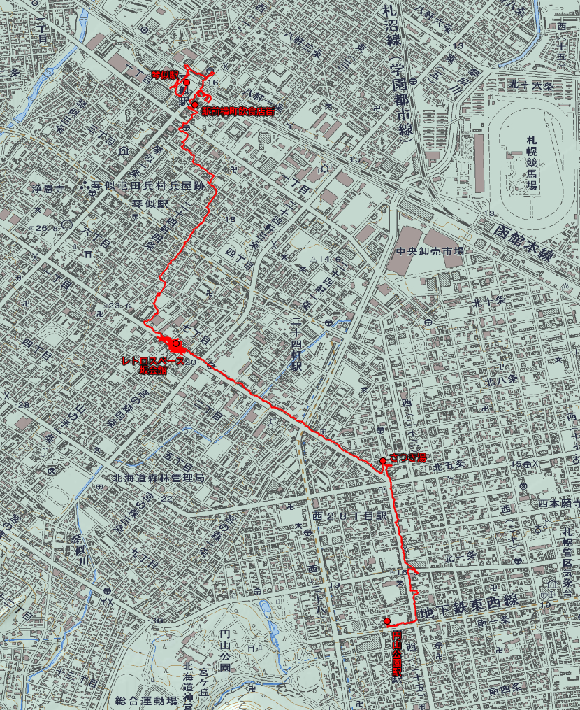 徒歩:琴似駅→レトロスペース坂会館→円山公園駅