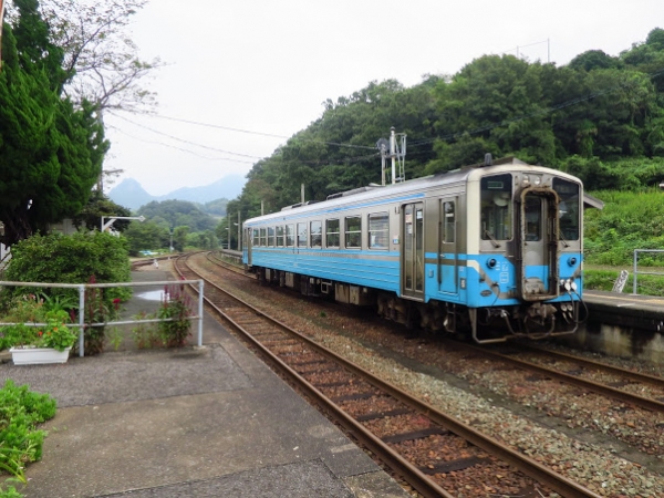 山と海に囲まれたのどかな駅舎。停車中に下車。