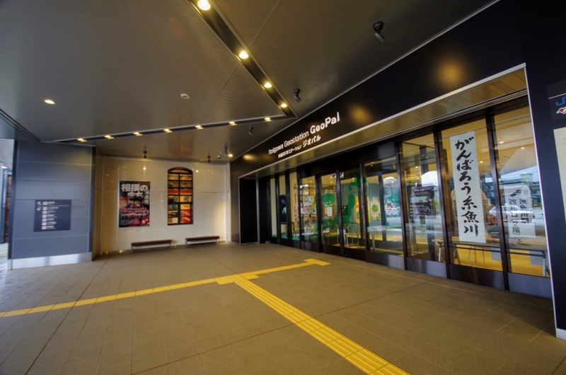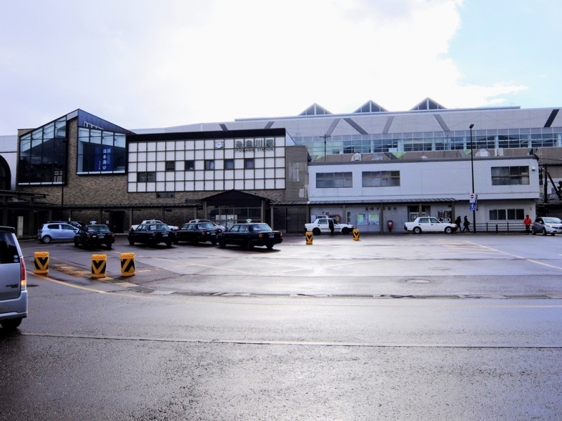▼アルプス口(南口)から見える明星セメント糸魚川工場