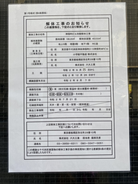 神保町 旧相互無尽会社 千代田区 2020.08.30 2022.01.14 旧相互無尽会社(神保町ビル別館) 東京都千代田区神田神保町2丁目 設計:安藤組 RC造4階建 竣工:1929年(昭和4年) ※竣工年については昭和5年(1930年)という情報もある。 9月から解体されると言われていた神保町の旧相互無尽会社ビル、その後しばらく伸び伸びになっていたが、10月には仮囲いで覆われ解体が開始され、11月には上層部がなくなってしまった様子。 1920年代の建築レトロ建築解体済・解体決定・解体中