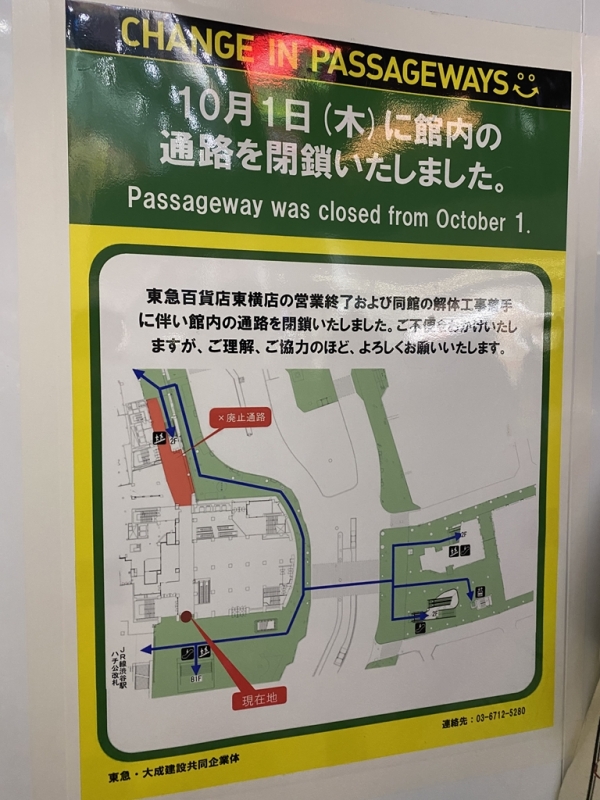 今年3月に閉店した渋谷駅の東急百貨店東横店。コロナ騒動もあり、しばらく渋谷を訪れてなかったが、通路が閉鎖されて通り抜けできなくなっていた。