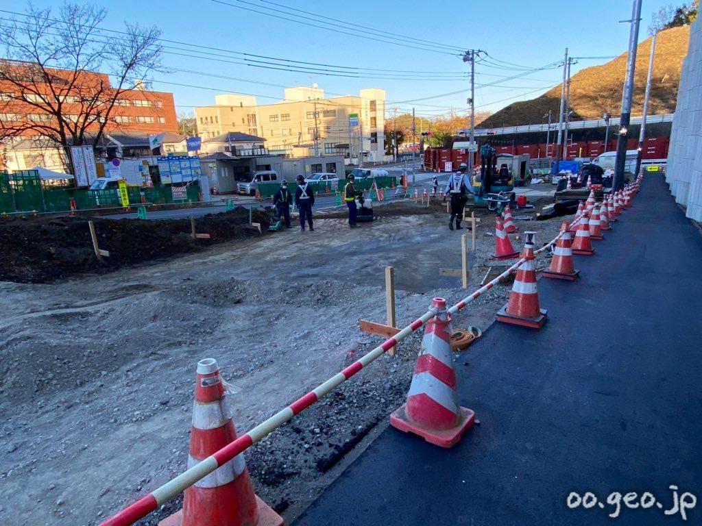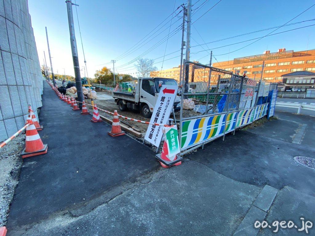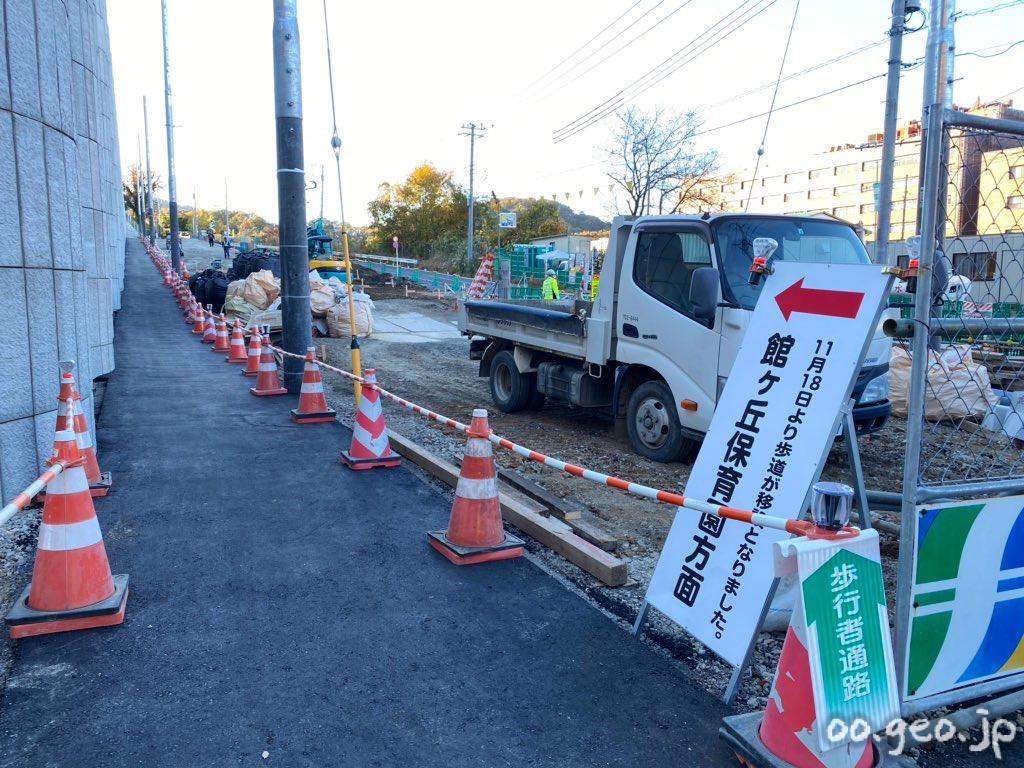 館ヶ丘保育園方面の歩道が移設されていた。