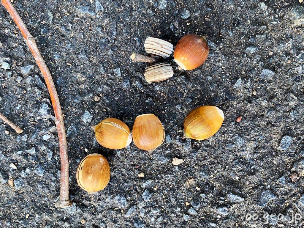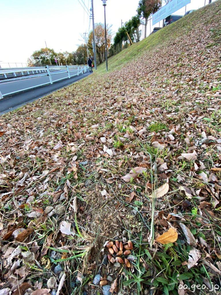 細長いどんぐりを拾った。高尾山学園中学部付近。