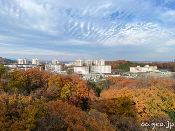 晩秋の館ヶ丘団地の眺望。右端の小高い山は初沢山(初沢城跡)だな。左手前の小高い丘は拓大か…