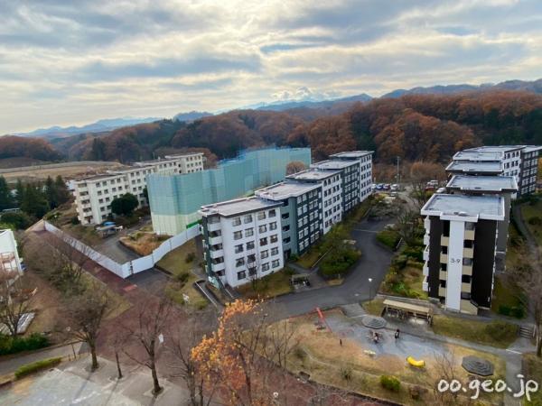 解体中の3-11号棟と解体待ちの3-12号棟。まだ眺めは変わらず。