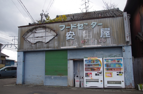 2.5kmほど、自動販売機1つもない道のりを歩いてきたが、八百津駅跡にたどり着いてやっと商業施設が出てきた。実際の八百津駅跡はもう少しずれた場所にあるようなのだが、この時は何の下調べもせずに出かけたのでそこまで突っ込んで確認できなかった。