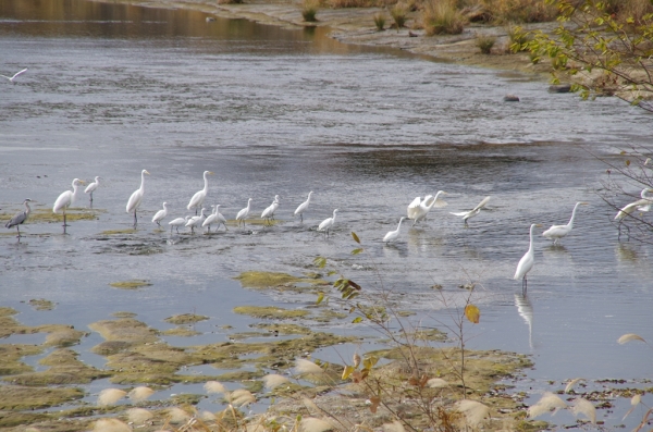可児川に出る。シロサギの親子の密生地になってる。平戸貝の化石株は残念ながら見れなかった。対岸に八百津線の橋台跡が見える。
