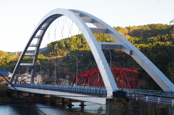 今回の八百津線めぐりは一応ここまで。ここから先の丸山水力専用鉄道についてはいつかちゃんと調べて訪れたいと思っている。ちょうど2年前の冬に八百津橋対岸の商店街周辺を散策したが、その時の軌跡と線をつなげるために八百津橋まで足を伸ばしておいた。ただ八百津橋は工事中で、夕闇迫り急いでいたこともあり、完全に渡りきらずに引き返してきてしまった。