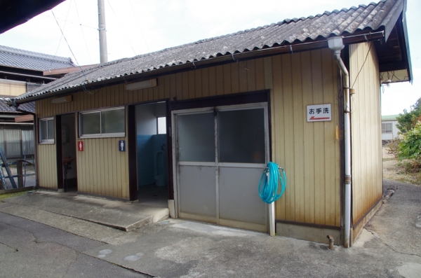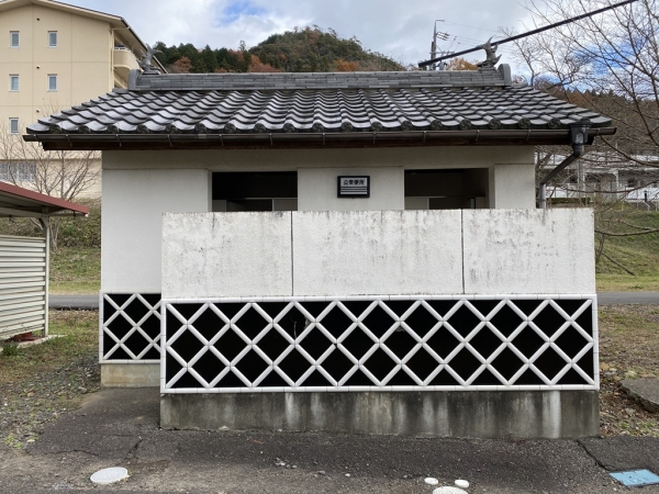 更に進むと兼山口駅跡にたどり着くが、当時の写真を見てもまったく面影がわかない。この辺の公衆便所はみんななまこ壁風のデザインを採用しているみたいだ。